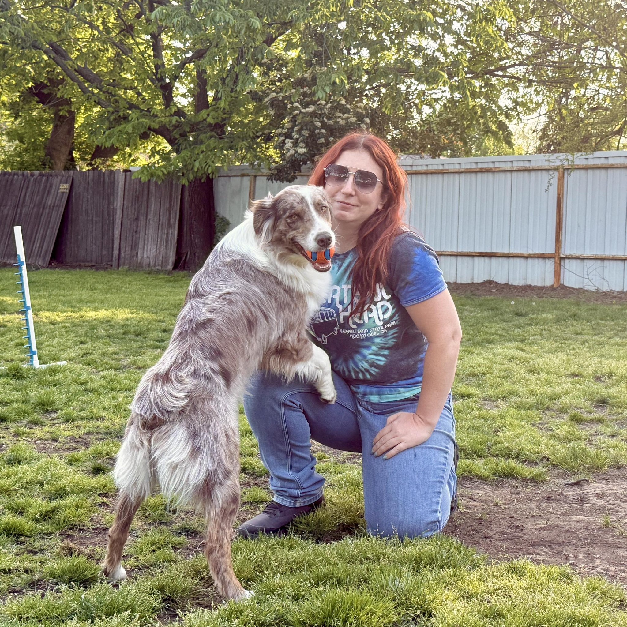 When I moved away from home for the first time to go to college I decided I needed a companion and naturally I went with an Australian Shepherd. In 2013 I purchased my first pure bred Aussie named Annie. While I had no experience training a dog like this for trials, or how to work Annie was always eager to please and quick to learn. While going to school I also worked ranches and managed a broodmare barn. Annie was always eager to help me bring the broodmares up in the morning. Annie was my constant companion in my first years living on my own and proved to be worth her weight in gold with her protective nature and pure happiness. I had one litter with her before she was hit by an ATV, and came back with major hip issues and I decided while she was an amazing mother and loves babies, that she would be happiest as the "grandma" of my brood.
